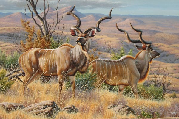 Greater Kudu At A Watering Hole, Etosha National Park, NamibiaPanoramic Images