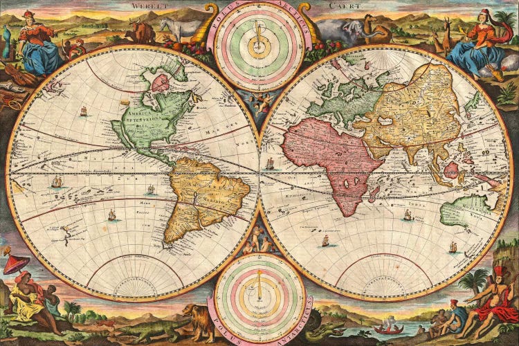 Antique Double Hemisphere Map of The World