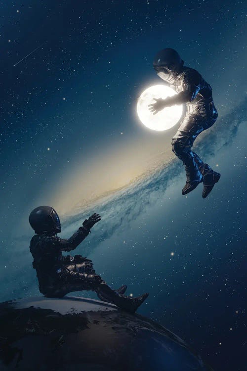 Astronaut On Moon Meets Jellyfish From Space