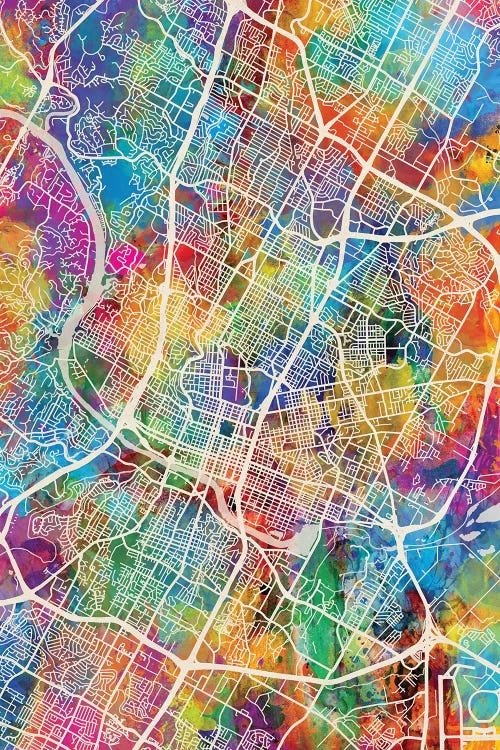 Austin City Map Colorful Watercolor Style