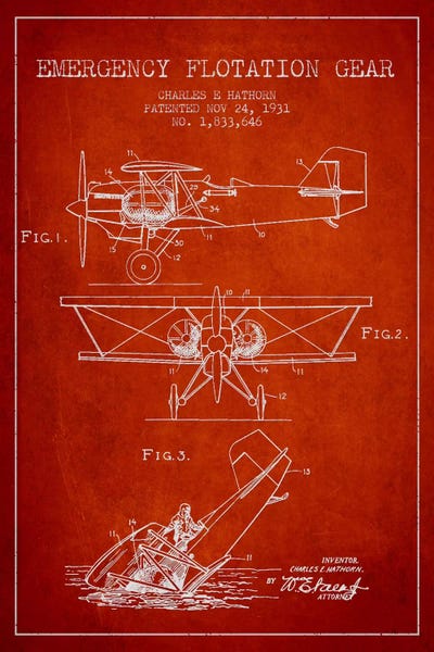 Float Plane Red Patent Blueprint