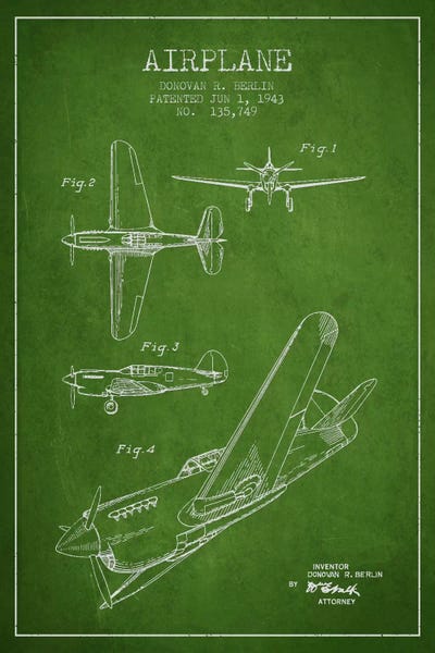 Airplane Green Patent Blueprint II