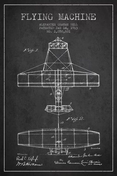 Flying Machine Charcoal Patent Blueprint