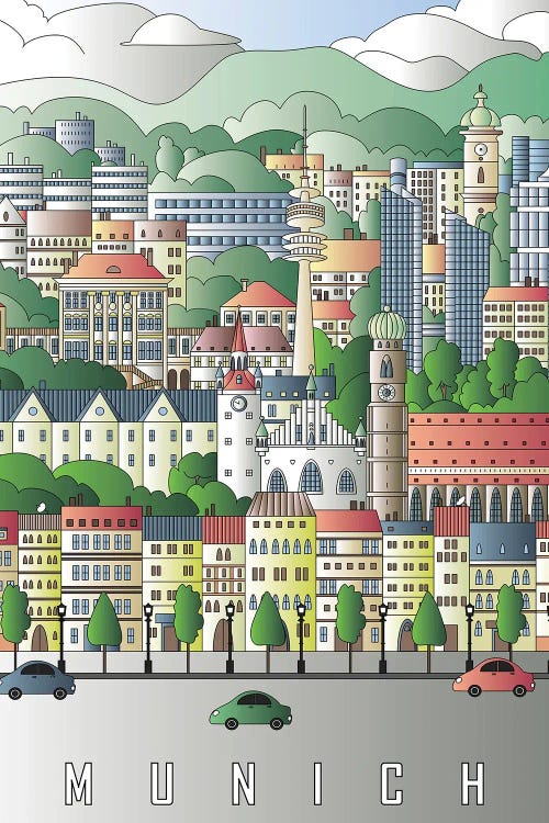 Neuschwanstein Castle, Germany, Warm Colours Illustration Travel PosterMambo Art Studio