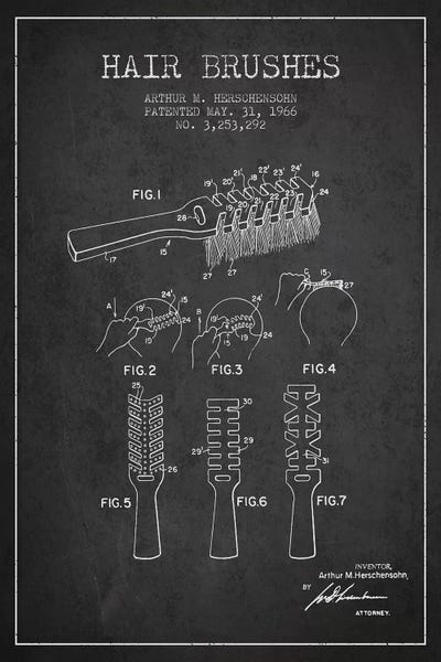 Hair Brushes Charcoal Patent Blueprint