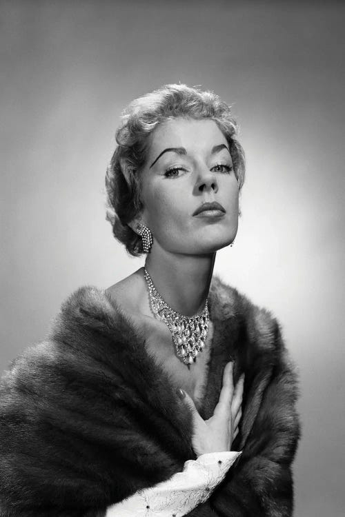 1950s Portrait Of Glamorous Woman Wearing Fur Stole Elegant Necklace EarringsVintage Images