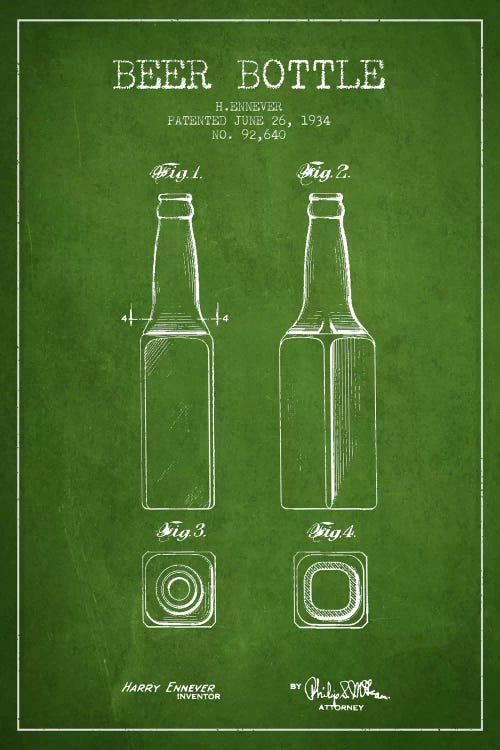 Beer Bottle Green II Patent Blueprint