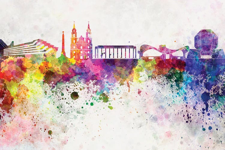 Minsk Skyline In Watercolor Background