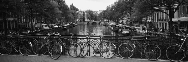 Bicycles On Bridge Over Canal, Amsterdam, Netherlands