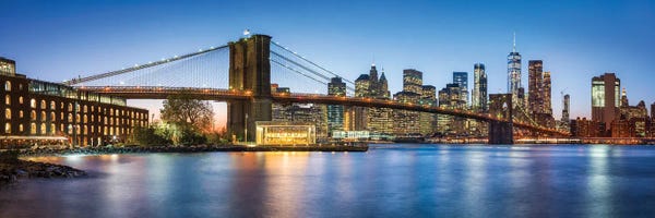 Brooklyn Bridge & Lower Manhattan At NIght, New York City, New York, USAPanoramic Images