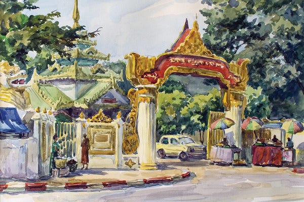 Buddhist Monk Passing The Entrance Of The Shwedagon Pagoda In Yangon, MyanmarJan Becke