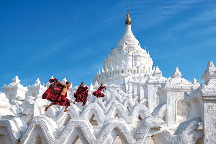 Buddhist Monk Passing The Entrance Of The Shwedagon Pagoda In Yangon, MyanmarJan Becke