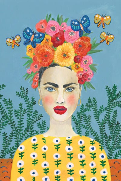 Watercolor Floral Indian Native Woman XV