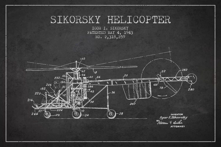 Helicopter Charcoal Patent Blueprint