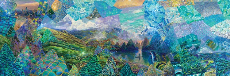 Reflection of temples and palm trees in a lake, Angkor Wat, CambodiaPanoramic Images