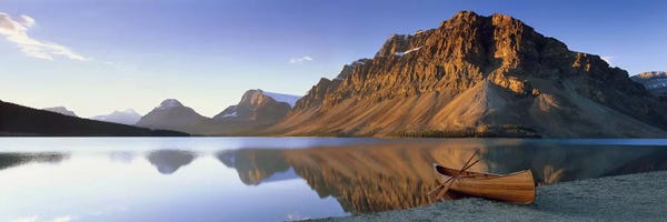 Crowfoot Mountain With A Lone Canoe On The Shore Of Bow Lake, Banff National Park, Alberta, Canada