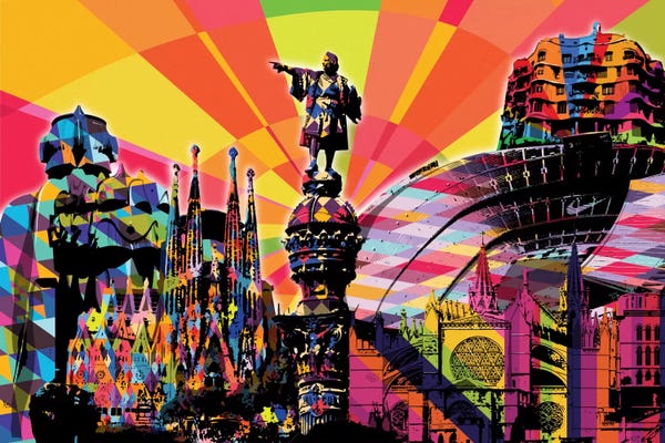Sagrada Familia, Barcelona, Spain, Warm Colours Illustration Travel PosterMambo Art Studio