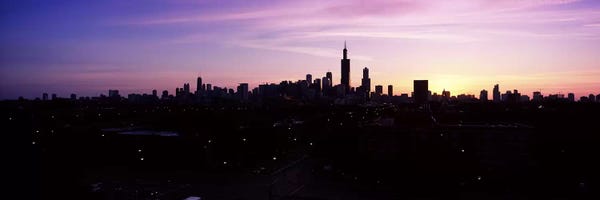 Silhouette of buildings at sunrise, Chicago, Illinois, USA #2Panoramic Images