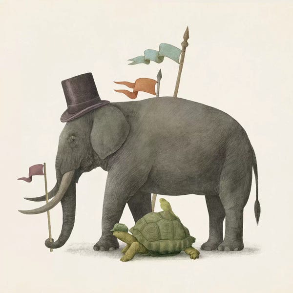 Whimsical Elephants with Red Apple