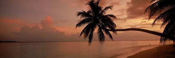 Silhouette of palm trees on the beach at sunriseFihalhohi Island, MaldivesPanoramic Images
