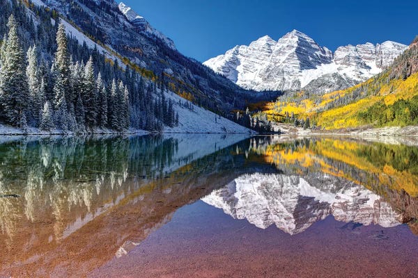 Maroon Bells Peaks Reflected In Maroon Lake, Snowmass Wilderness, ColoradoTim Fitzharris