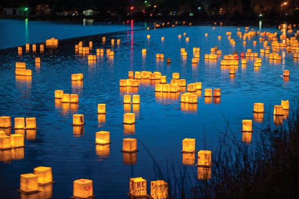 USA, Colorado Springs. Water Lantern Festival On Prospect Lake.Janell Davidson