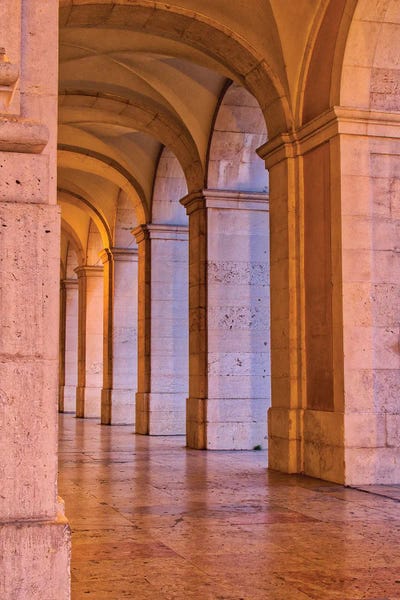 Portugal, Lisbon. Columns Of The Arcade Of Commerce Square With Evening Light.Julie Eggers