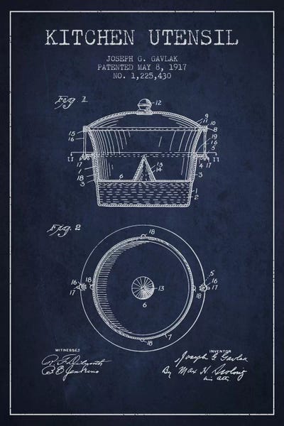 Kitchen Utensil Navy Blue Patent Blueprint