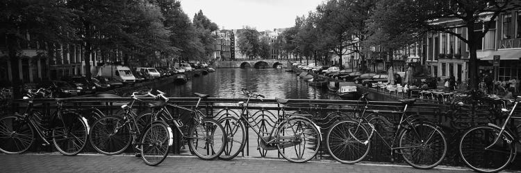 Bicycle Leaning Against A Metal Railing On A Bridge, Amsterdam, NetherlandsPanoramic Images