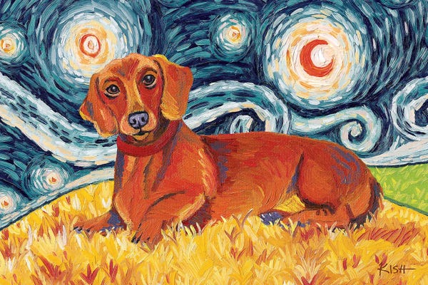 Dachshund On A Starry Night Red