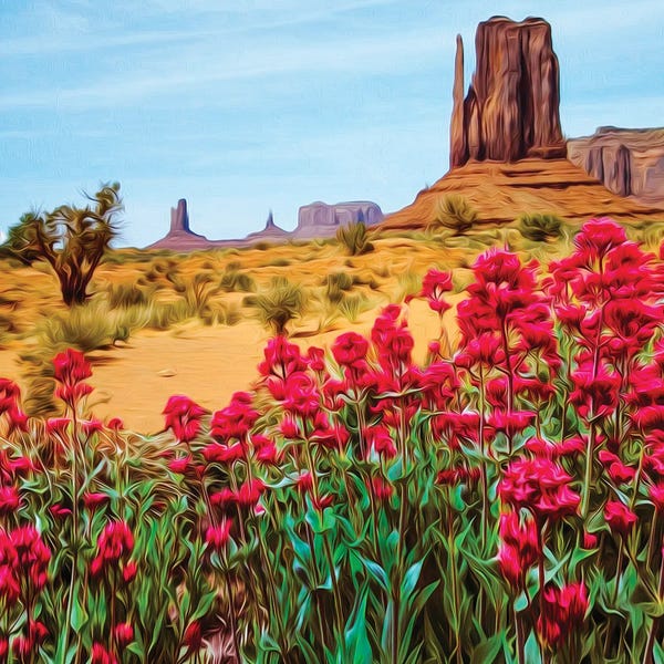 Blooming Red Flowers Against The Background Of The Texas DesertIevgeniia Bidiuk