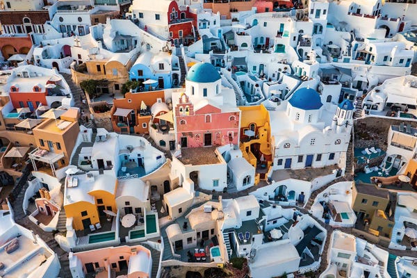 Blue Domes And Colorful Houses, Santorini