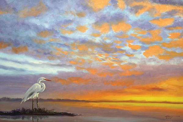 Great White Egret At Sunset