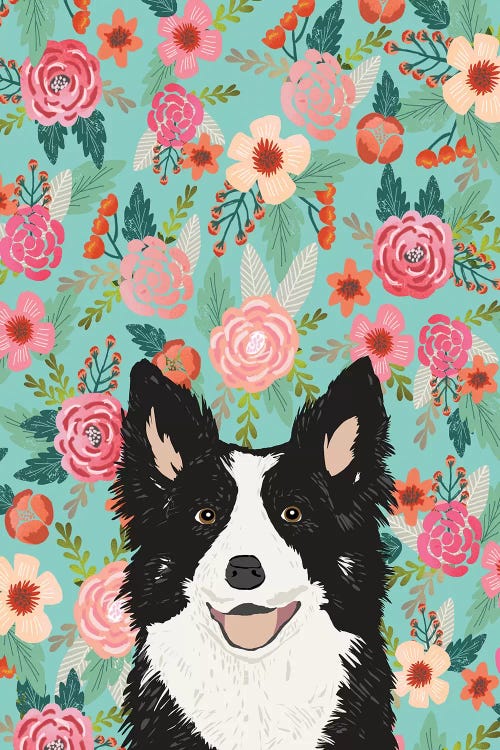 Border Collie Black Floral