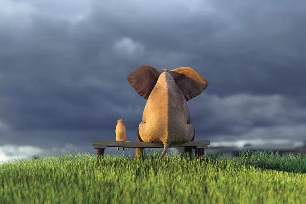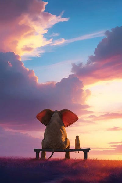 Elephant And Dog Look At The Stormy Sky II