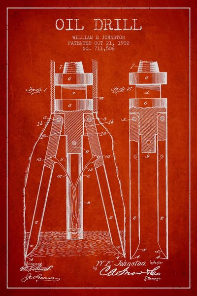 Oil Drill Red Patent Blueprint