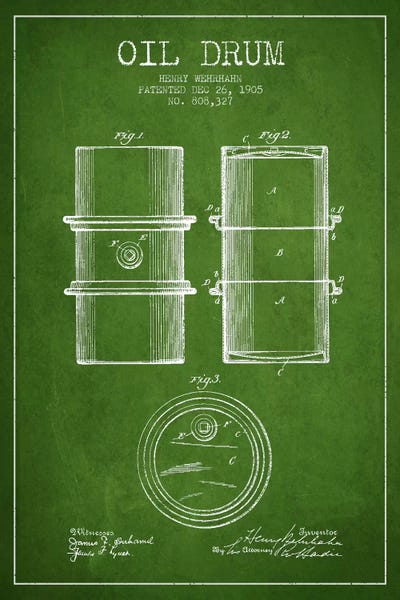 Oil Drum Green Patent Blueprint