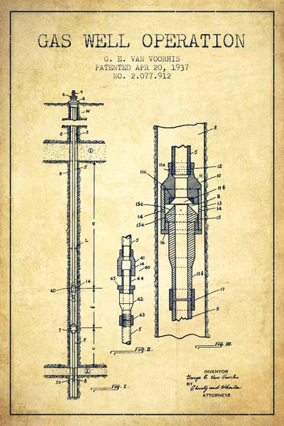 Gas Well Operation Vintage Patent Blueprint