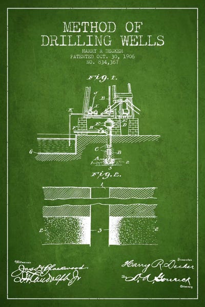 Oil Drill Green Patent Blueprint