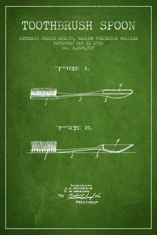 Toothbrush Spoon Green Patent Blueprint