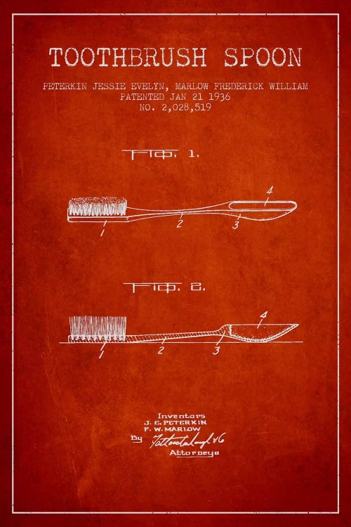 Toothbrush Spoon Red Patent Blueprint
