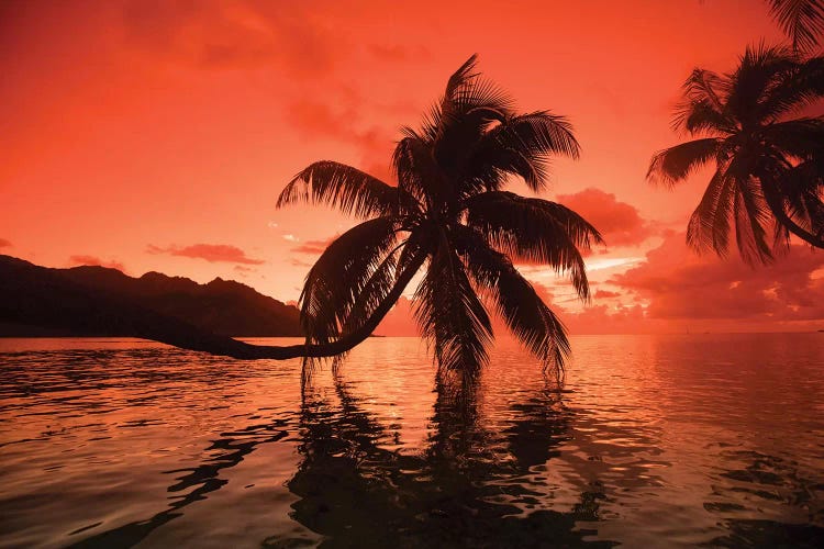 Palm Tree Laden Beach, Bora Bora, Society Islands, French PolynesiaPanoramic Images