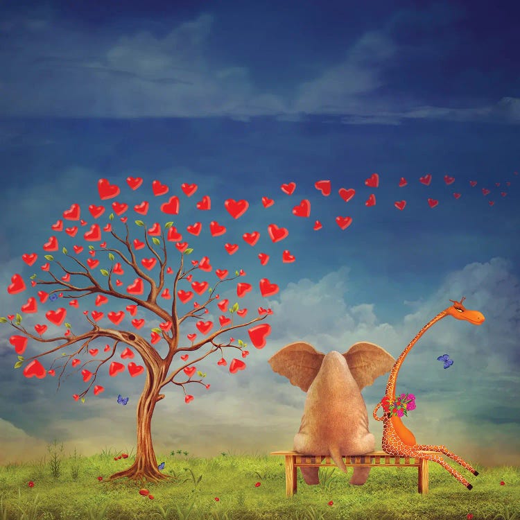 Meeting Of An Elephant And A Giraffe