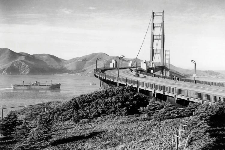 Barge passing under a bridge, Golden Gate Bridge, San Francisco, California, USAPanoramic Images