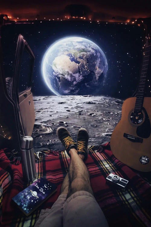 Gabriel In Van On The Moon Look At Planet Earth