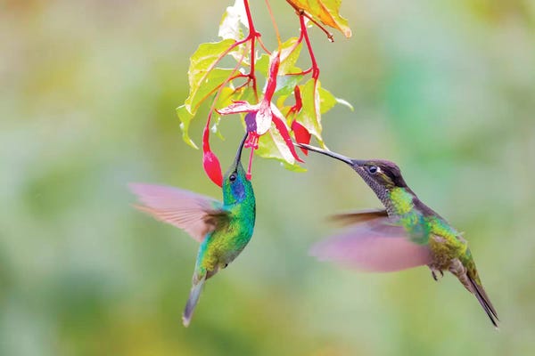 Central America, Costa Rica. Male hummingbirds feeding.