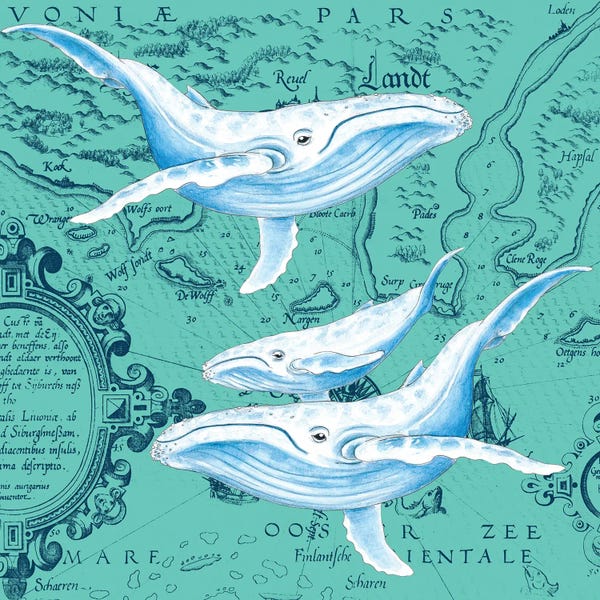 Blue Whales Family Vintage Map White