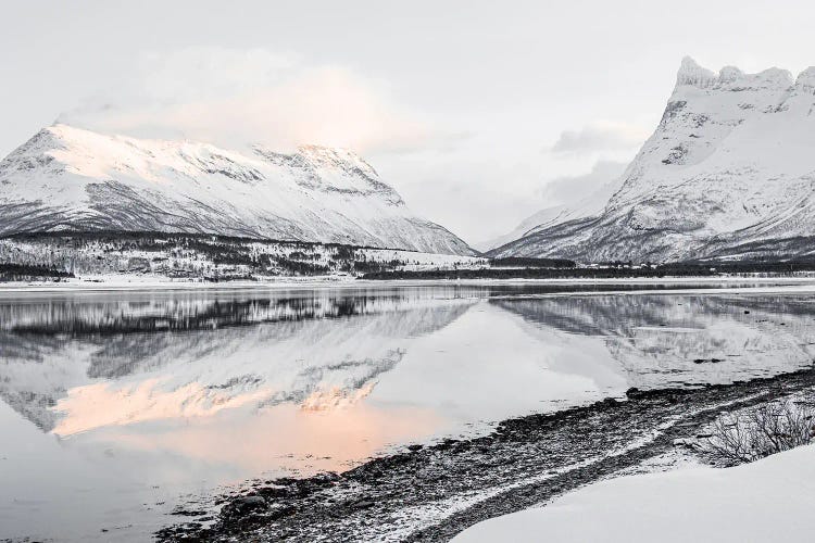 Mountain Reflection With A Pink Sunset Sky In Iceland