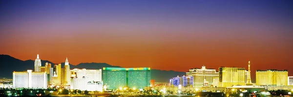 Low angle view of skyscrapers in a city, The Strip, Las Vegas, Nevada, USAPanoramic Images