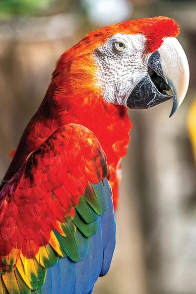 South America, Brazil, Amazon, Manaus, Headshot of a scarlet macaw.